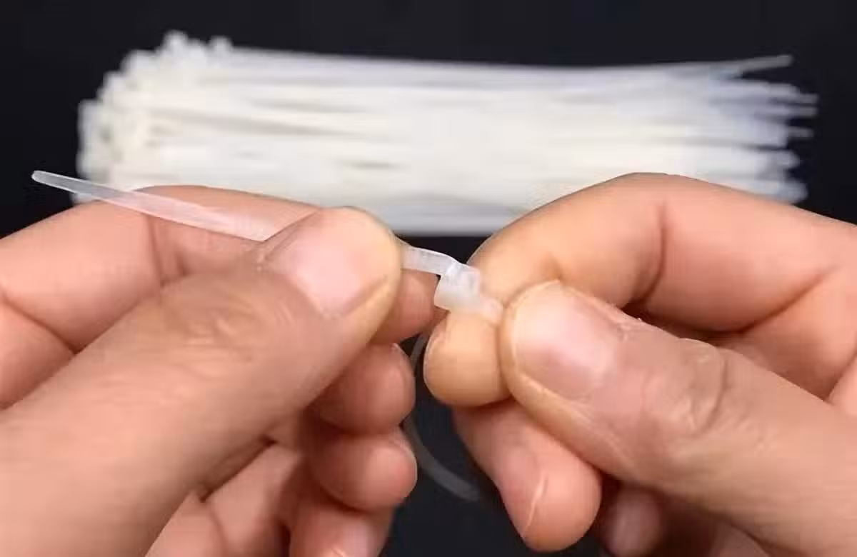 原來扎帶上有一個小機關,不用剪斷,一碰就能打開,可以重複使用