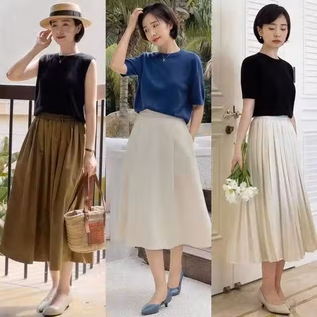 建議小個子女生,夏天少穿闊腿褲,「奶奶鞋+半裙」,顯高又時髦!