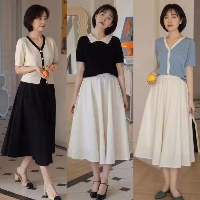 建議小個子女生,夏天少穿闊腿褲,「奶奶鞋+半裙」,顯高又時髦!