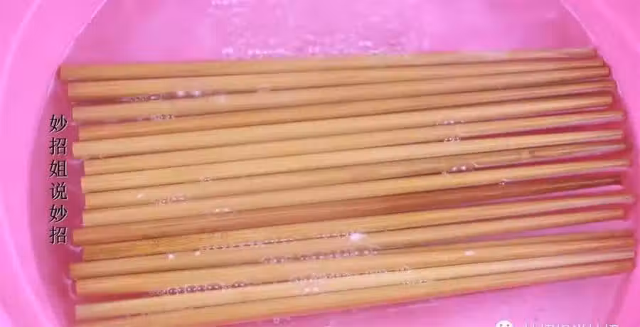 大概讓它浸泡上十幾分鐘的樣子,水溫也不燙手了,我們再把筷子用百潔布搓洗一下。相信平時很多朋友清潔筷子,都是將筷子放在手上一大把,然後直接搓洗的,但其實想把筷子清潔的更加干凈,我們最好就是一根一根的清洗,這樣才能把筷子的每個面都清洗到。
