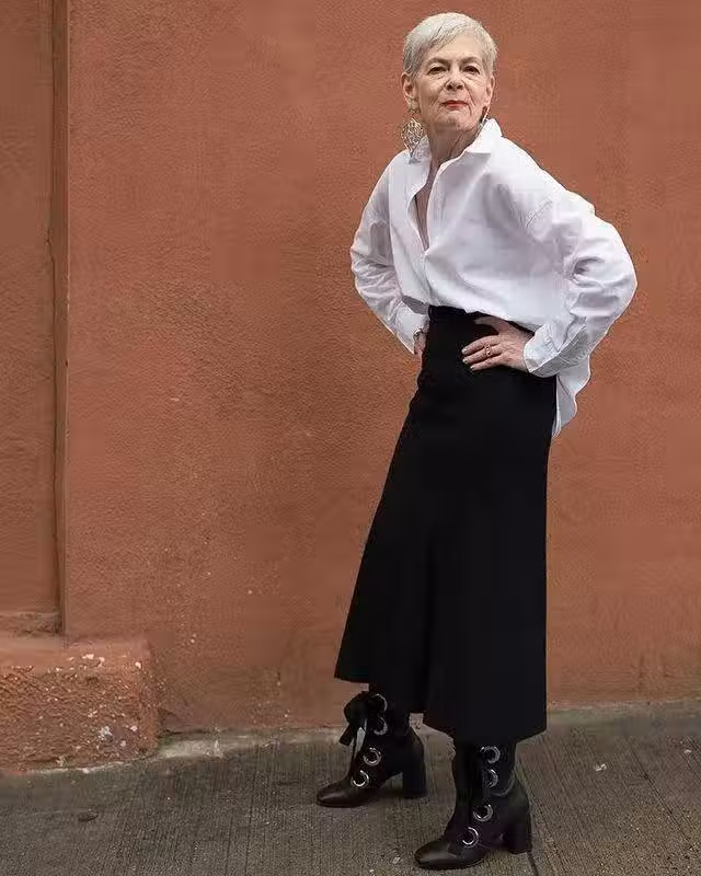 由此可見,時尚並不是年輕人的專利,愛美不分年齡,只要愛美懂打扮,哪怕長皺紋、白發又怎樣?自己的美麗自己做主。Lyn Slater博主曾說:「我不是二十歲了,我也不想回到二十歲,我很酷,這就是我。」自信的女人最美。