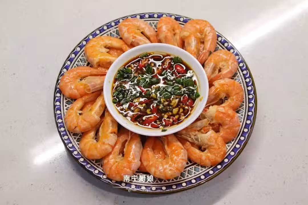 蝦的鮮甜與蘸料的香辣味,在舌尖上交織出完美的結合。這樣的美味,讓人回味無窮。