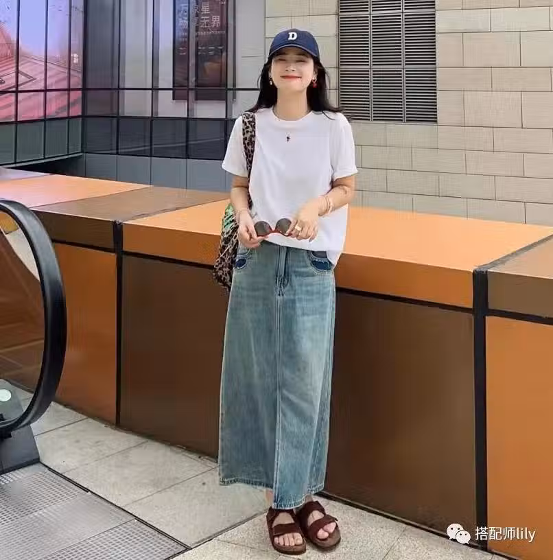 開叉設計的牛仔半身長裙,誰穿都能巧妙拉長腿部線條,視覺上輕鬆打造出高挑感,顯瘦又顯腿長!經典的牛仔裙,真的很百搭,一點也不挑人穿,不管是在哪個年齡段,都可以駕馭!