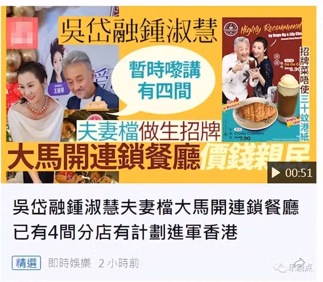 近日,據港媒報道,TVB老戲骨吳岱融在馬來西亞連開4家餐廳,正式榮升老闆。消息一出,網友們紛紛留言恭喜。