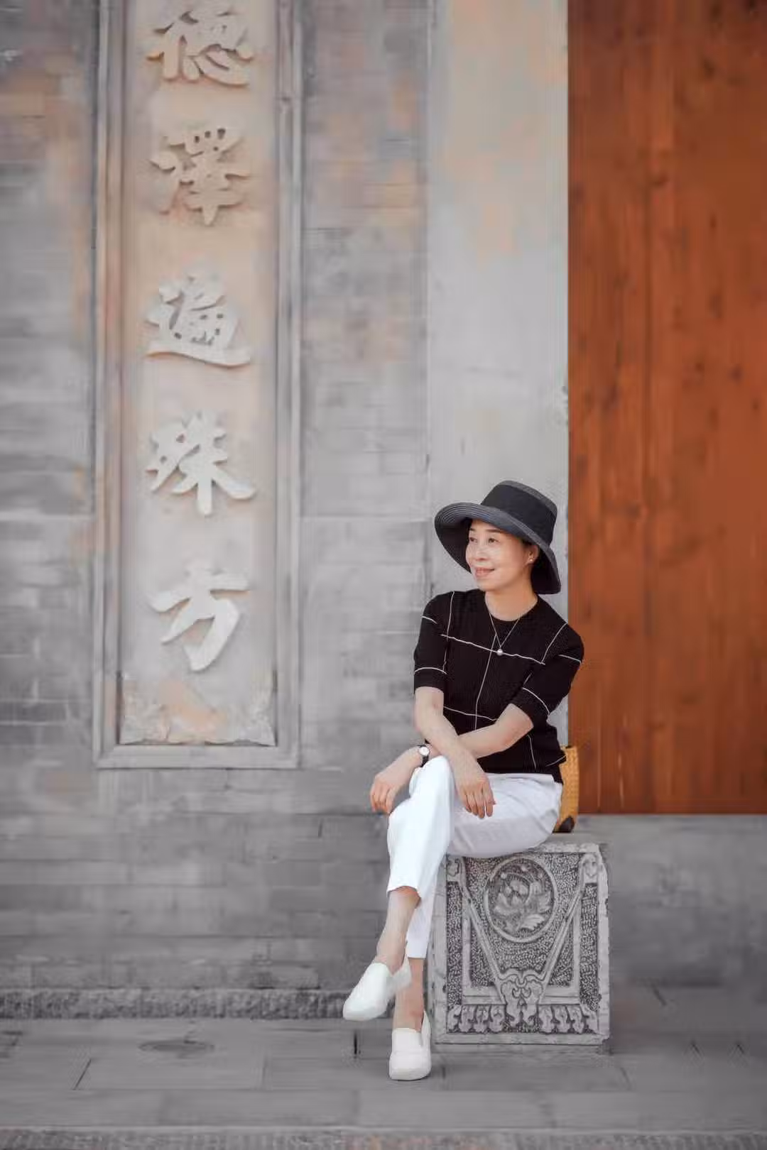 女人到了中年,肥胖和身材走樣可能都會隨之而來,在拍照時可以調整角度和距離來規避此類問題,比如您可以站在高處,讓攝影師以低角度仰拍你的上半身,然後稍微帶點側身拍攝,就能起到很好的顯瘦效果,也能拍出意境美。