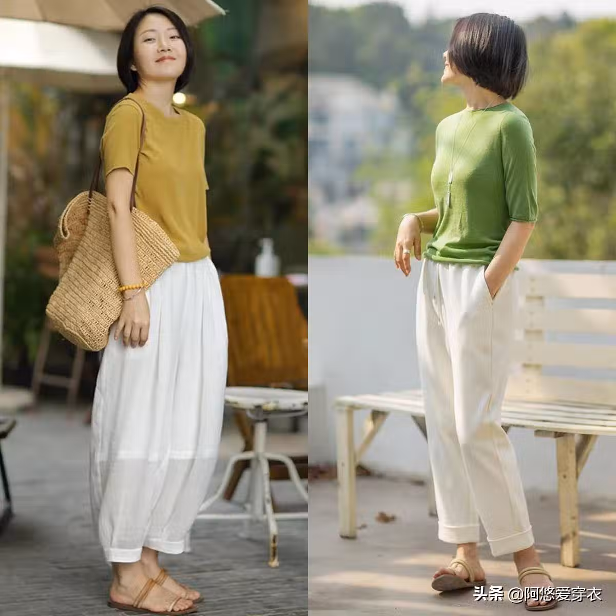 其次,推薦大家穿米色的衣服,米色是一種介於白色和黃色之間的色彩,這種色系非常的柔和,但它和白色又有一些小小的區別。根據下面對比,你也能發現左邊的純白色看上去還是有些許單調的,而右邊這種米色的單品更加柔和溫和,沒有攻擊性。