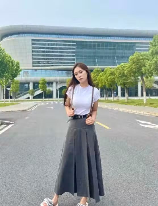 梨型其實有點「矛盾」的身材,如果身高在160cm的梨形,臀部、胯部、腰部的比例還算是比較優越的特徵。只不過會容易有假胯的情況出現,所以百褶裙一定要選擇高腰的款式。