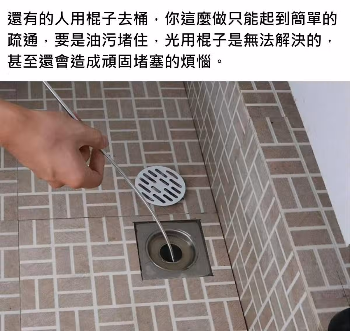 還有的人用棍子去桶,你這麼做只能起到簡單的疏通,要是油污堵住,光用棍子是無法解決的,甚至還會造成頑固堵塞的煩惱。