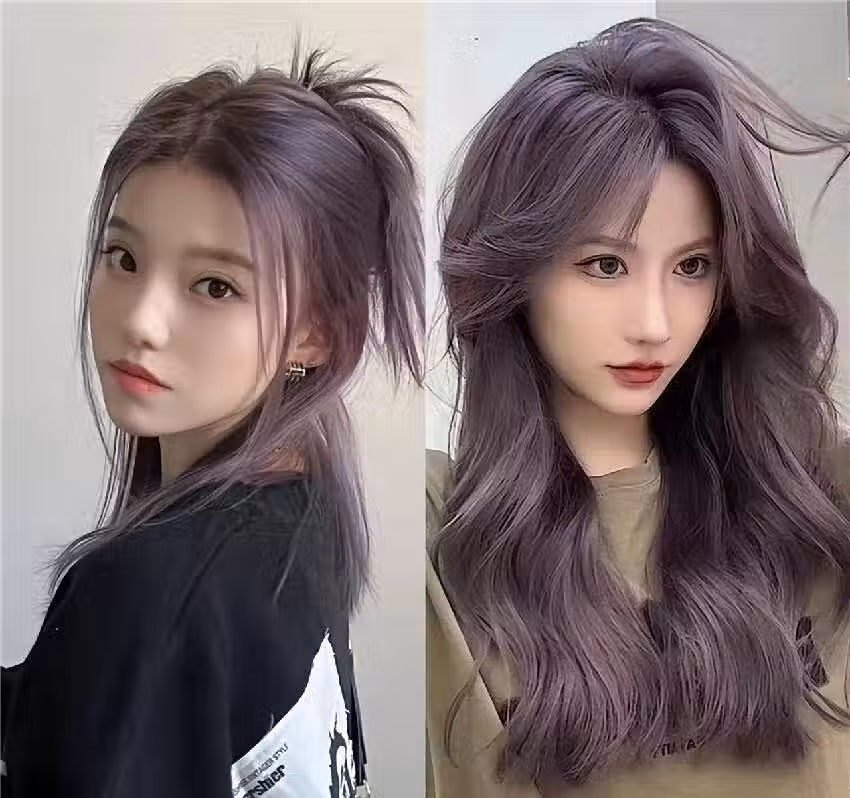 最近兩年流行的發色還是比較個的,而且都融入了多種色彩,尤其是這種菸灰紫色,它既有紫色的浪漫,又有灰色的低調,將菸灰色和紫色融合在一起能夠組成一個非常低調但卻又非常洋氣的發色。
