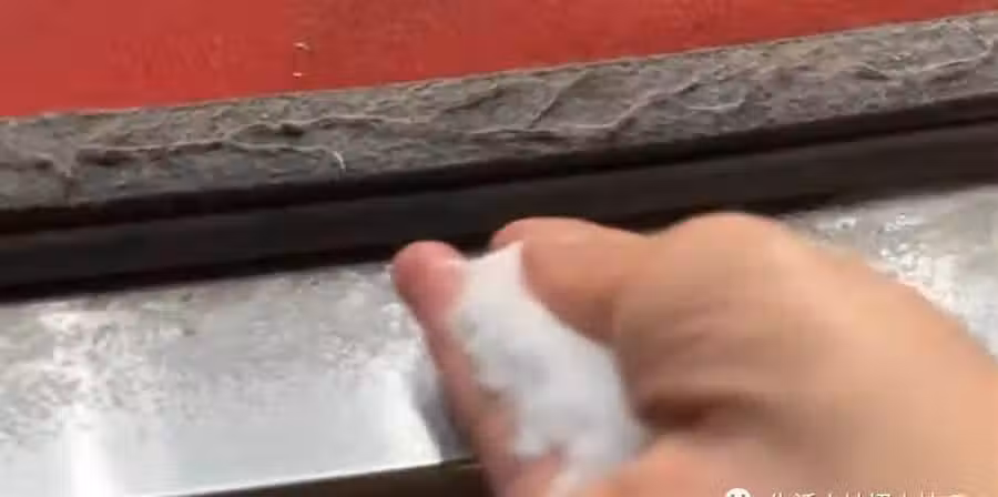 我們裝上一把食鹽,把它直接灑在上面油污比較多的一個地方就可以了,然後,再加入一些小蘇打,均勻的塗抹在門檻上就可以了。