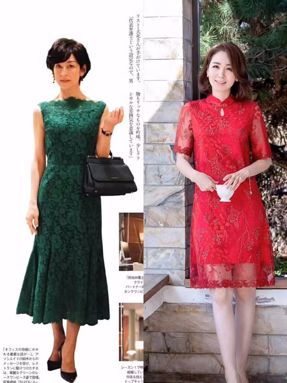 蕾絲面料就像一把雙刃劍,有浪漫一面也有土氣一面,對於50歲女人來說,選到一件好看的蕾絲裙很難,翻車機率太高。材質粗劣的蕾絲單品會帶來廉價感,捨得在穿搭上花錢的女性朋友們,也可能會因為選錯蕾絲單品的款式、顏色,導致穿衣沒檔次,花了錢反而找來煩惱。最典型的是大紅色、墨綠色、玫紅色、亮藍色、明黃色、紫色等彩色系蕾絲裙,這類裙裝由蕾絲材質製成,不僅考驗身材,還特別容易顯膚色暗沉無光。50歲女人如果擁有能夠穿上蕾絲裙的好身材,為什麼不去買其他更能體現你自身高貴氣息的服飾呢?總比穿這類「神仙也難救」的裙子好上太多。