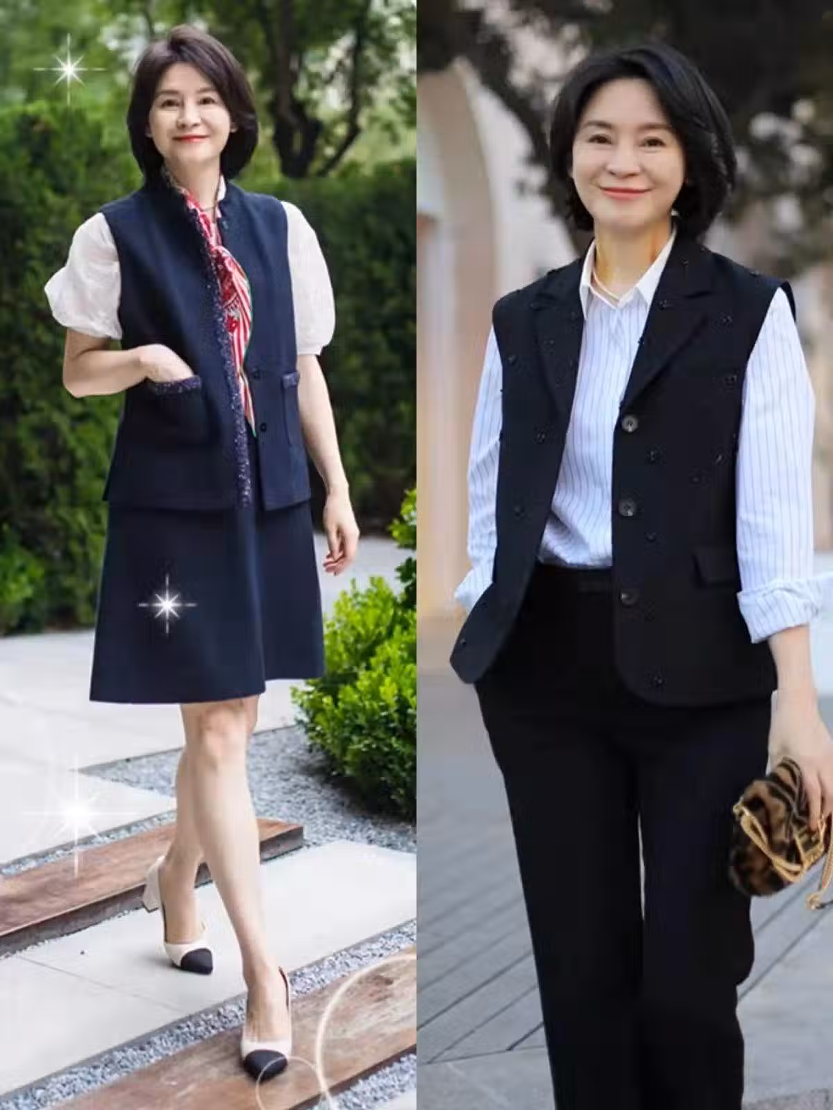 同一件單品能夠穿出不同風格,比如西裝馬甲,用它疊穿泡泡袖襯衫既簡潔又俏皮,換成條紋襯衫,整體上更加正式高級。