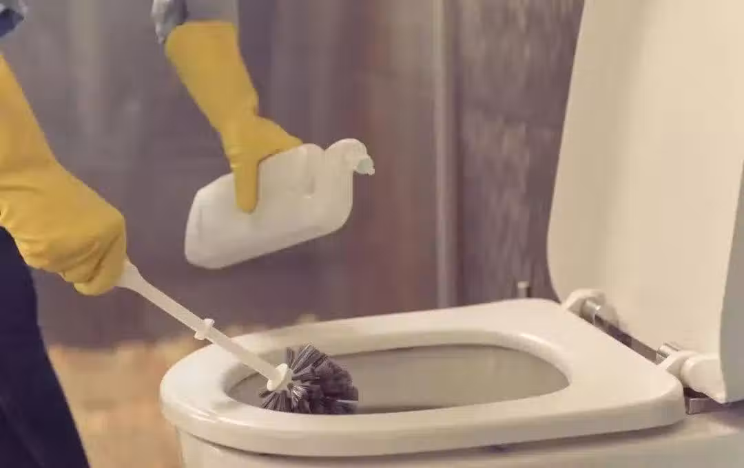 等待10分鐘左右,讓清潔劑發揮作用。最後用刷子刷洗馬桶,再用清水沖洗干凈。