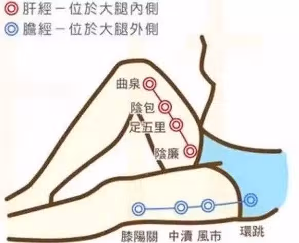 ③膽經沿線問題,偏頭、肋下、腿、腳踝、腳疼或冷等。