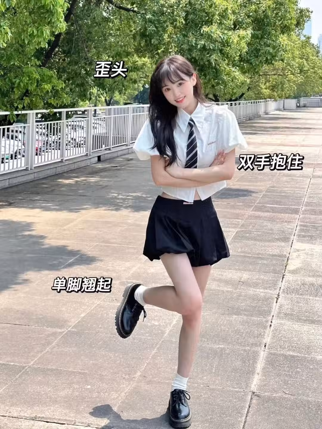 想要拍出百變站姿照,可以通過豐富手姿來實現,如果模特的上半身偏瘦,可以指導其來個雙手環抱的姿勢,頭稍微歪向一側,單腳翹起,姿勢能賦予人物安全感的同時也能拍出表現力。