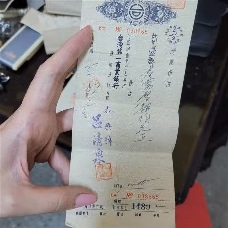 近日就有網友在臉書社團「爆系知識家」中發文分享,他表示自己在整理老家時,發現一張民國47年的「台灣第一商業銀行」支票,該張支票是「中華民國47年7月5日」發出,金額部分則高達「1萬400元」,原PO表示高達萬元的支票找到了好幾張,他也好奇如今已過64年了,不知道該張支票「還可以換錢嗎?」