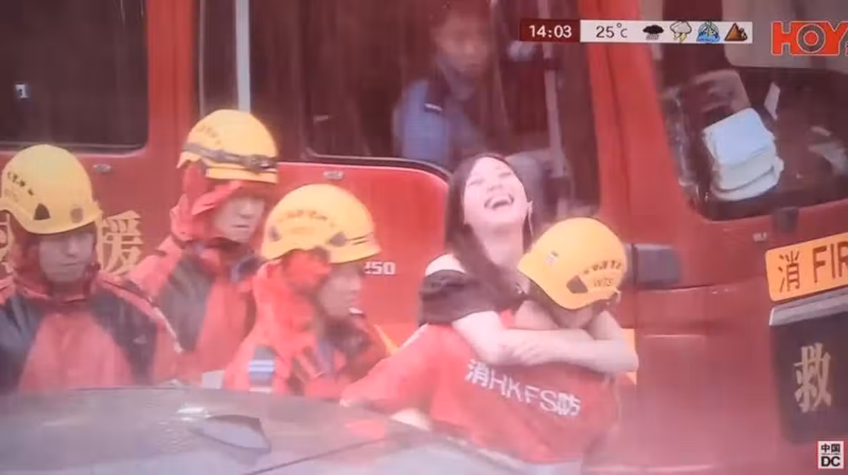 港女受困被消防熊抱救出 網瘋傳燦笑畫面:可以結婚了