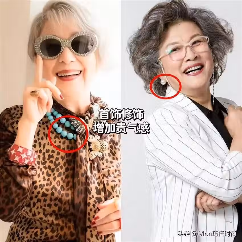 在這些方面不敷衍,你就是個有氣質的白發奶奶[one]一定要搭配首飾,為細節增加精緻感白發奶奶除了穿搭除了髮型,還要戴首飾,對於年老的女人來說,首飾一定要有質感,其次也要避開款式花哨,材質廉價的首飾,拉低搭配高級感,還很難和我們衣櫥的衣服匹配,搭配有難度。