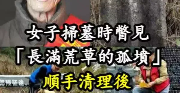 女子掃墓時瞥見「長滿荒草的孤墳」 順手清理後「一看墓碑文字」瞬間跪下