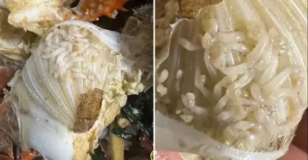 螃蟹蒸熟打開「一肚白蛆」瞬間倒胃口,她火大PO照「連鍋一起扔了」網狂刷不識貨:水質好才有