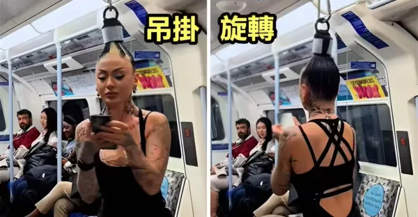 女子捷運上「盤腿吊空中」!輕鬆晃像在盪鞦韆 乘客全看傻 知情人急喊:快跑!她在練功