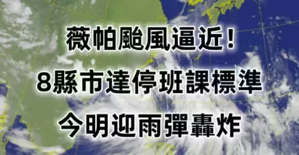 快訊/薇帕颱風逼近!8縣市達停班課標準 今明迎雨彈轟炸!