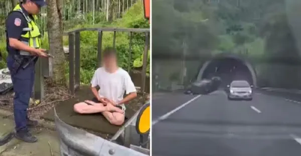 南投國道6號驚見「武俠高手」!!24歲男翻車後「盤腿打坐療傷」下秒1動作以為修仙