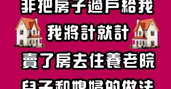老伴臨終前非把房子過戶給我!我將計就計「賣了房去住養老院...」 兒子和媳婦「讓我明白老伴多睿智!」