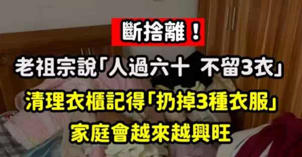 斷舍離!老祖宗說「人過六十,不留3衣...」 清理衣櫃記得「扔掉3種衣服」家庭會越來越興旺