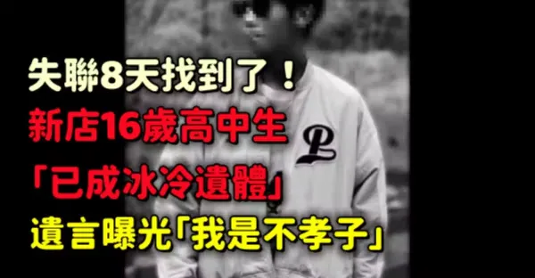 失聯8天找到了!新店16歲高中生「已成冰冷遺體」...遺言曝光「我是不孝子...」