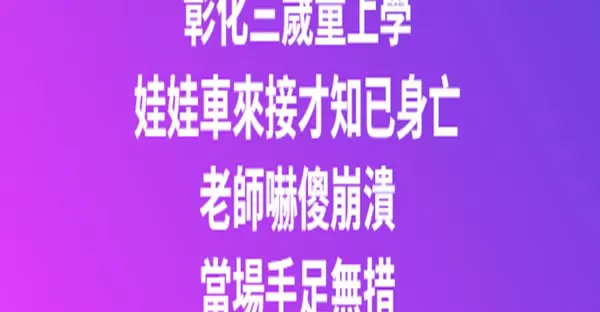 彰化3歲童上學!娃娃車來接才知「已經身亡」 老師嚇傻崩潰「當場手足無措!」