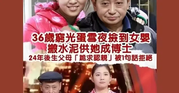 雪夜撿到棄嬰!36歲窮光棍「扛水泥24年」養出博士女兒,生母「跪求認親」被1句話拒絕