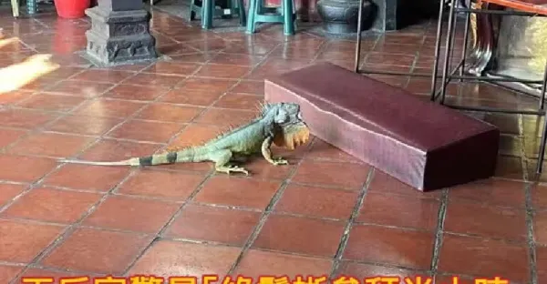 天后宮驚見「綠鬣蜥參拜半小時」 信眾擲筊感動「是媽祖的指示」