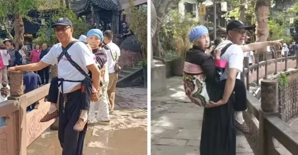 最美的風景!51歲大叔「背88歲老母親出遊」照片曝光 他受訪時「淡淡說了一段話」感動60萬網友