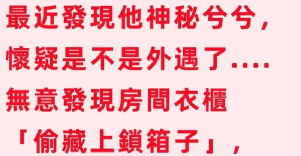 我和老伴分房睡長達20年,但也不太會吵架!! 最近發現他神秘兮兮,懷疑是不是外遇了....無意發現房間衣櫃「偷藏上鎖箱子」,一撬開…裡面東西讓我心跳漏了一拍