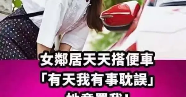 女鄰居天天搭便車「有天我有事耽誤」她竟罵我!!於是我改搭捷運上班「幾天後看見她丈夫在等我.」