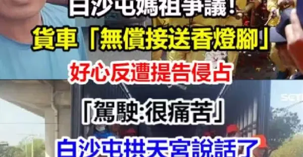 白沙屯媽祖爭議!貨車駕駛無償接送「好心載香燈腳」善事反遭提告侵占,司機:「很痛苦」