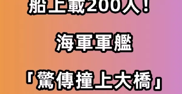 快訊/ 船上載200人! 海軍軍艦 「驚傳撞上大橋」 死傷人數曝光
