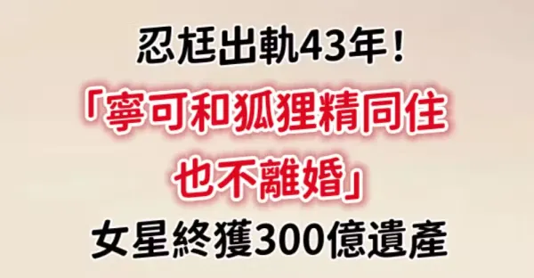 忍尪出軌43年!「寧可和狐狸精同住,也不離婚」女星終獲300億遺產