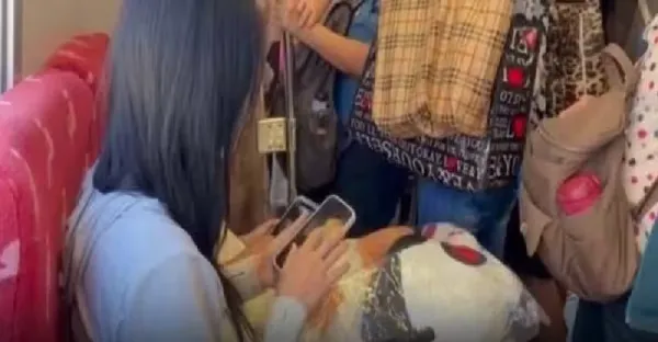 地鐵站想搭訕正妹卻被腿上「詭異視覺」嚇倒!網友放大照片後搭急喊:快跑!已有人中招!