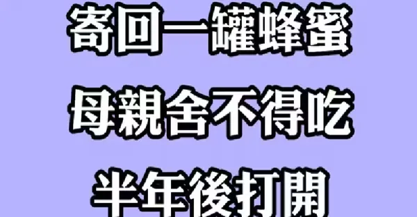 女兒遠嫁三年未歸,寄回一罐蜂蜜母親捨不得吃,半年後打開報了警...