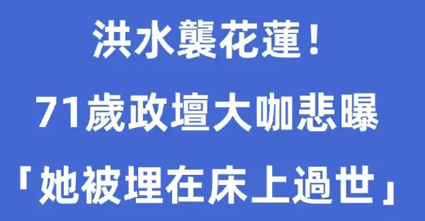 快訊/洪水襲花蓮!71歲政壇大咖悲曝「她被埋在床上過世」 痛苦發聲了