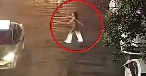 湖北一女子在橫穿馬路時突然折返,下一瞬間,直接和後車發生碰撞!