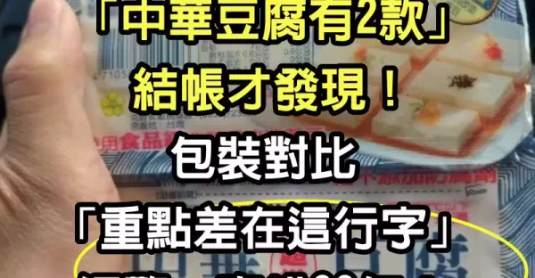 大家來找碴!他曝「中華豆腐有2款」結帳才發現 包裝對比「重點差在這行字」網驚:吃錯20年