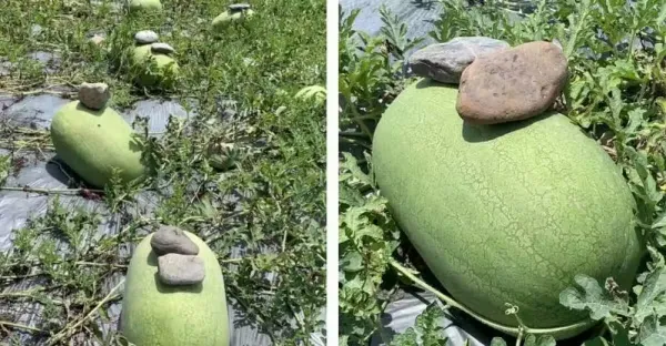 西瓜上壓石頭!網友不解問「是怕它跑掉嗎」被笑翻 果農揭「放的位置也有差」影響超大❗️