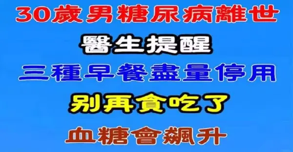 30歲男糖尿病離世 醫生提醒「三種早餐」儘量停用 別再貪吃了 血糖會飆升