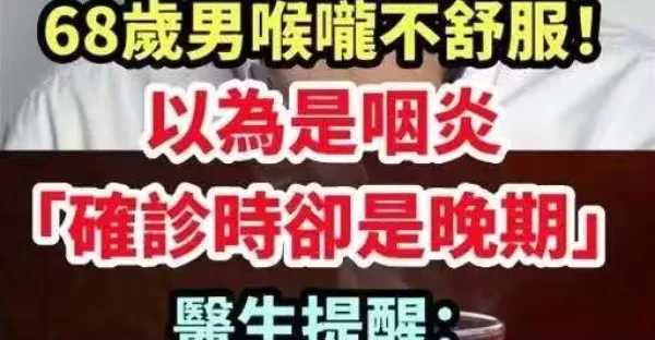喉嚨不舒服以為是咽炎 ,68歲男「確診時卻是晚期」,醫生提醒:不要每天都喝「這種飲料」
