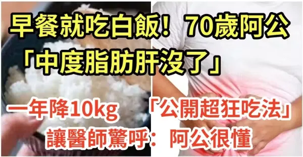 早餐就吃白飯!70歲阿公「中度脂肪肝沒了」一年降10kg 「公開超狂吃法」讓醫師驚呼:阿公很懂