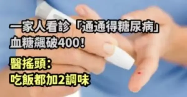 一家人看診「通通得糖尿病」 血糖飆破400!醫搖頭:吃飯都加2個調味
