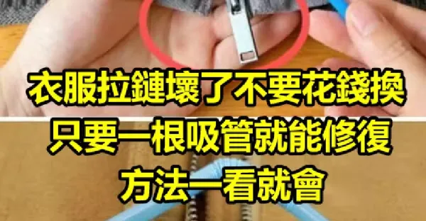 衣服拉鏈壞了,別急著花錢換!只需要一根吸管,就能輕鬆修復。這個簡單的方法,你學會了嗎